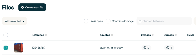 Navigate to the Files page overview and select the File Reference that you need in your report. You can select multiple files, depending on what you need your report to contain.