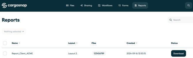 Your reports will show up in the report overview on the platform. From there, you can download your report by selecting the download button.