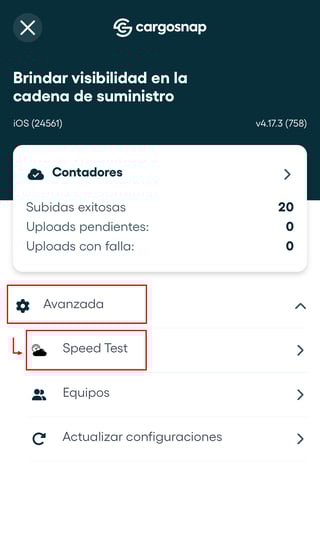 - Haz clic en Avanzada y luego busca el botón Speed Test: