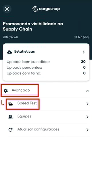 - Clique em Avançado, e então encontre o botão Speed Test: